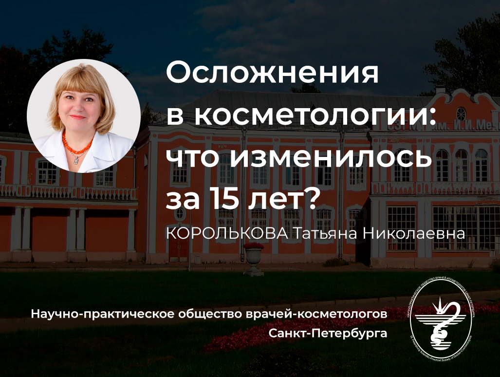 Профессор Т.Н.Королькова, председатель научно-практического общества врачей-косметологов Санкт-Петербурга, подготовила для специалистов лекцию "Осложнение в косметологии: что изменилось за 15 лет?"